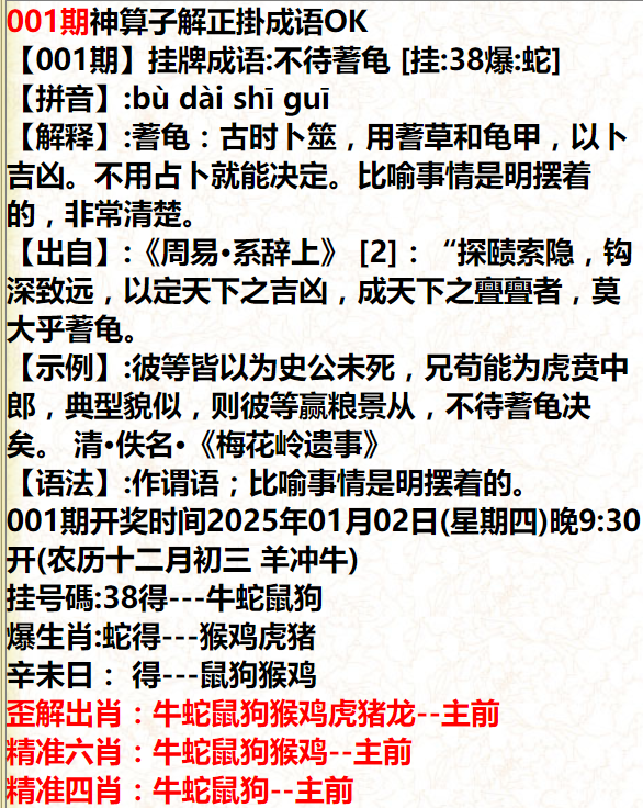 第001期:【神准公式】一肖中特一肖中特四肖期期连准!